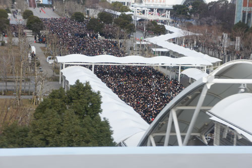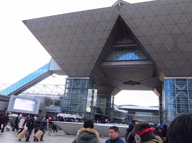 排隊的壯觀景象,早上開始下雨,我和丸子冒著雨排隊進場,逛了東館和企業館后,下午回到市區準備將貨送往會場。